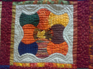 Wenn man genau hinsieht, sieht man, dass ich verstreut mit goldfarbenem Garn die Umrisse von Muscheln eingequiltet habe (ich hoffe, man kann´s erkennen).